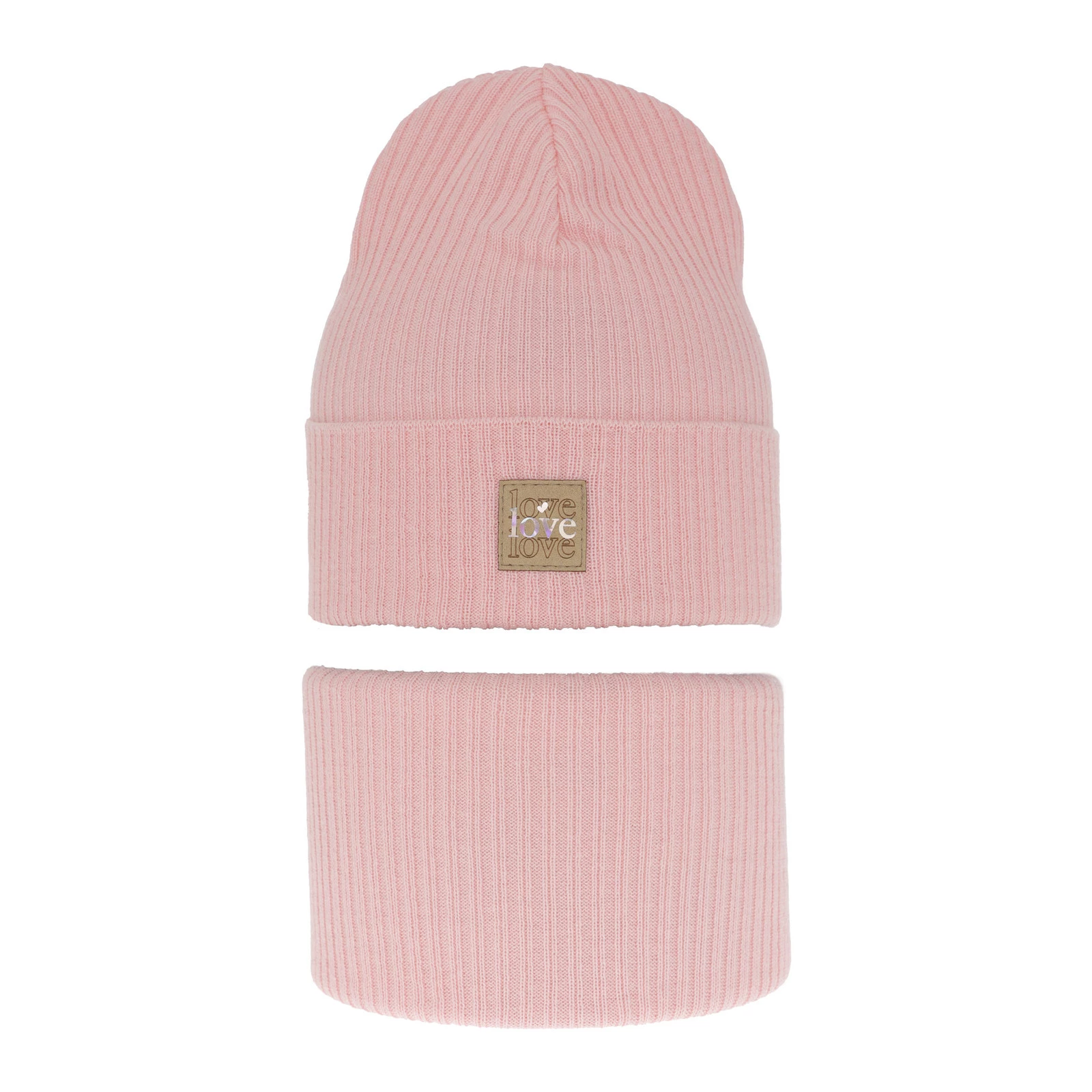 Herbst und Frühlingsset Mädchen: Mütze und Schlauchschal, mit Baumwolle, Rosa Furora