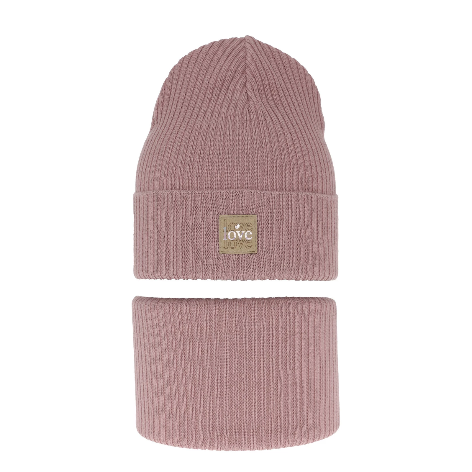 Herbst und Frühlingsset Mädchen: Mütze und Schlauchschal, mit Baumwolle, Rosa Furora