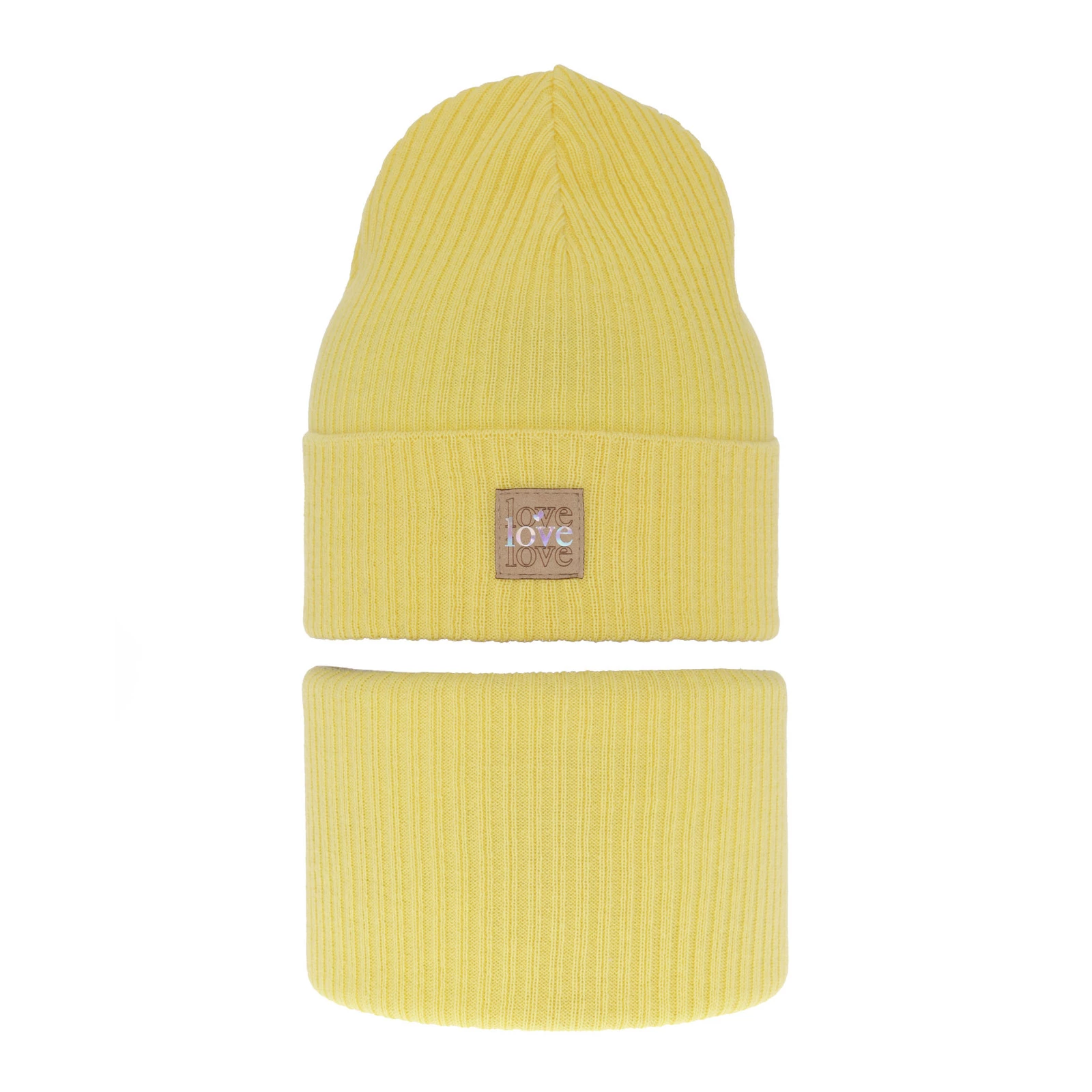 Herbst und Frühlingsset Mädchen: Mütze und Schlauchschal, mit Baumwolle, Gelb Furora