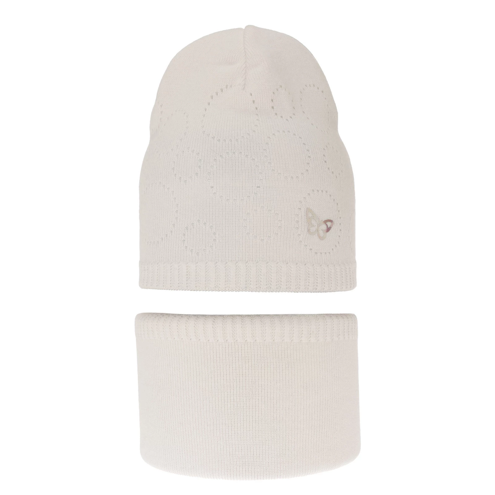 Herbst und Frühlingsset Mädchen: Mütze und Schlauchschal, mit Baumwolle, Cremefarben Amarilla
