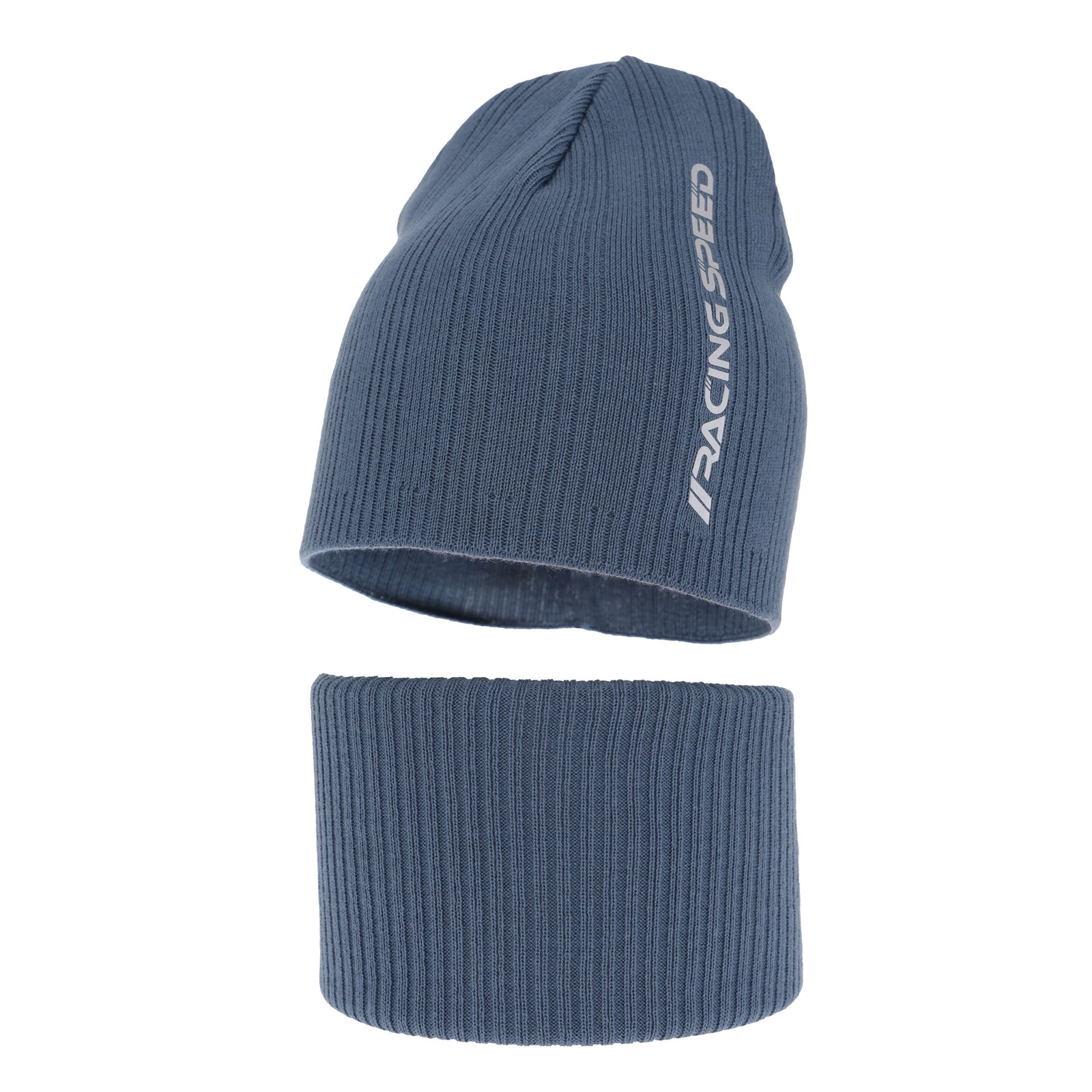 Herbst und Frühlingsset Jungen: Mütze und Schlauchschal, mit Baumwolle, Blau Kolorado