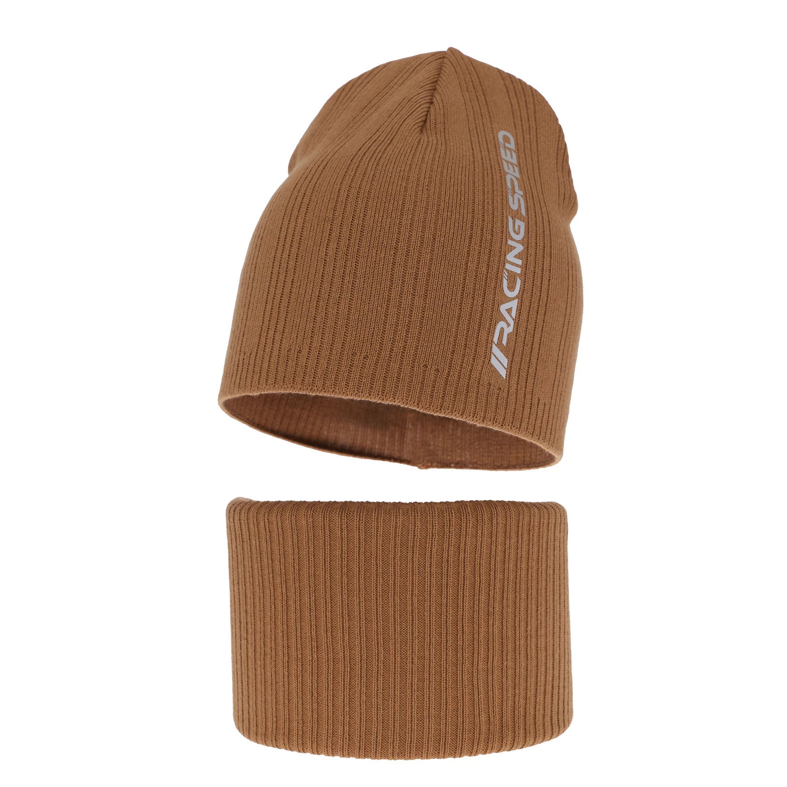 Herbst und Frühlingsset Jungen: Mütze und Schlauchschal, mit Baumwolle, Camel Kolorado