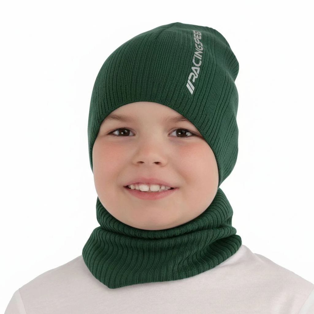 Herbst und Frühlingsset Jungen: Mütze und Schlauchschal, mit Baumwolle, Grün Kolorado