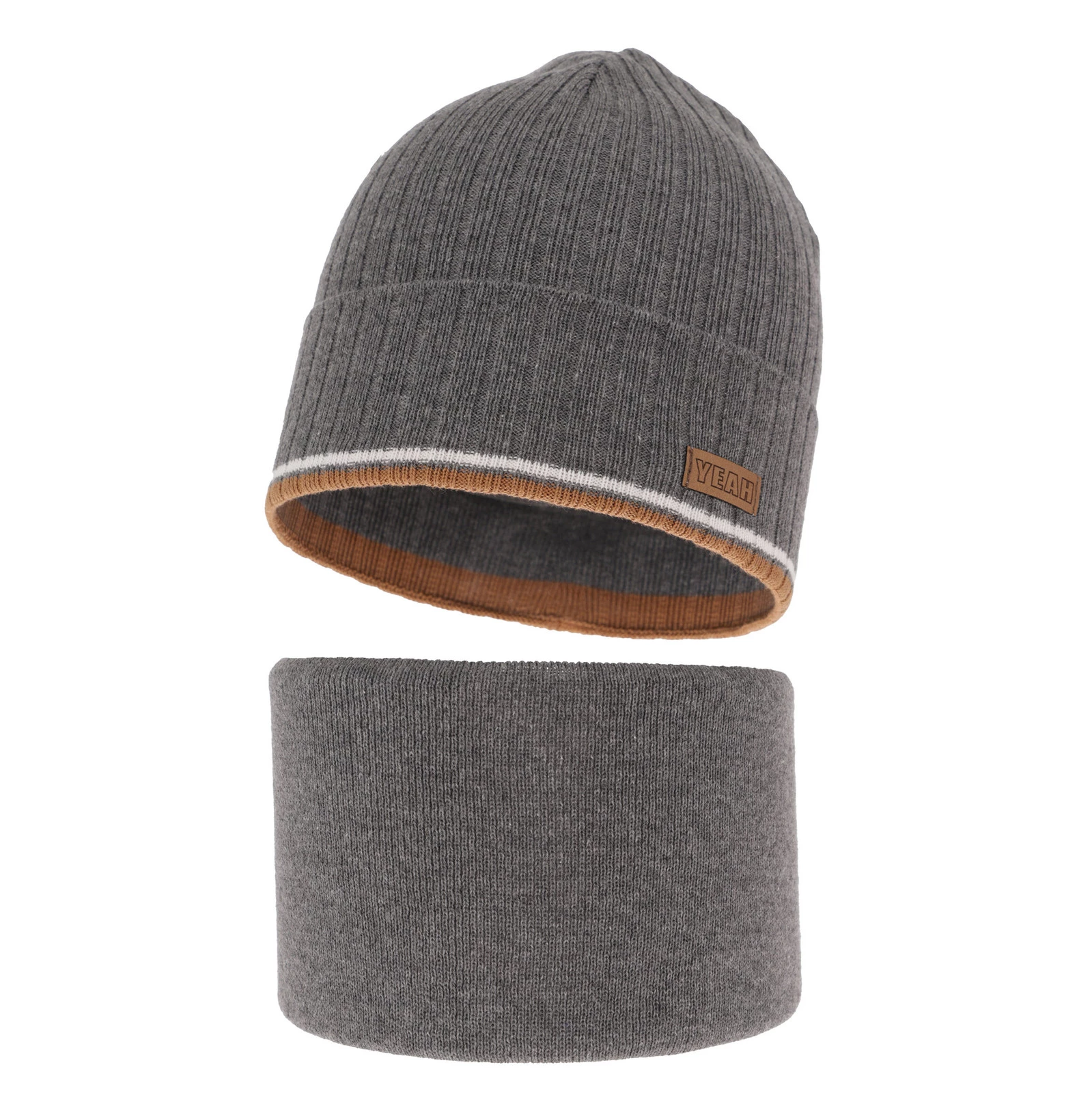 Herbst und Frühlingsset Jungen: Mütze und Schlauchschal, mit Baumwolle, Grau London