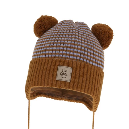 Herbst und Frühlingsmütze für Jungen mit zwei Bommeln Braun Laurent