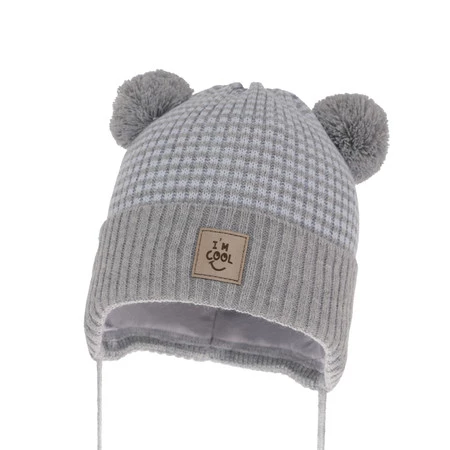 Die charakteristischen Elemente unserer Mütze sind die zwei niedlichen Garnbommeln, die ihr einen unverwechselbaren Charakter verleihen. Dank ihnen wird sich Ihr Sohn auf dem Spielplatz und im Kindergarten von der Masse abheben. Das modische Streifenmuster und der süße Aufnäher mit der Aufschrift "I'm cool" machen diese Herbst- und Frühlingsmütze für Jungen zu einem modischen Akzent jedes Outfits.