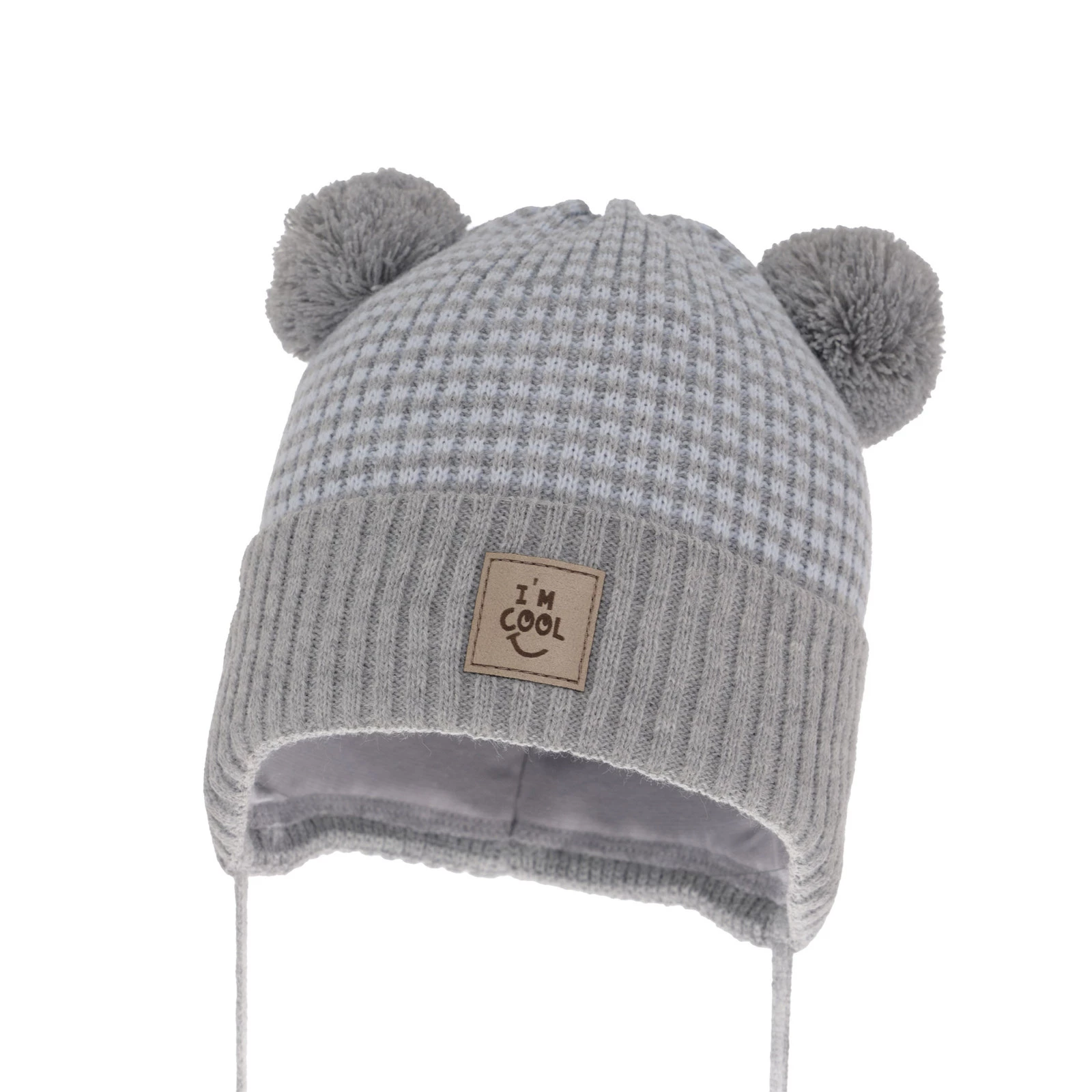 Herbst und Frühlingsmütze für Jungen mit zwei Bommeln Grau Laurent