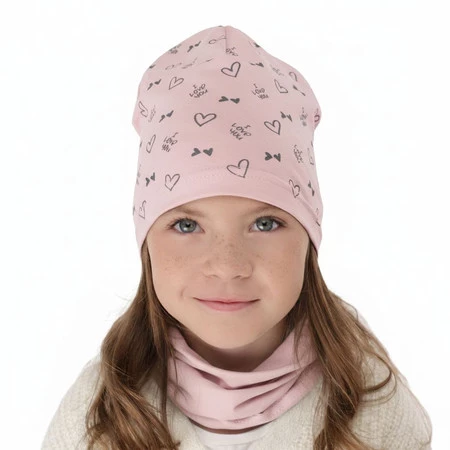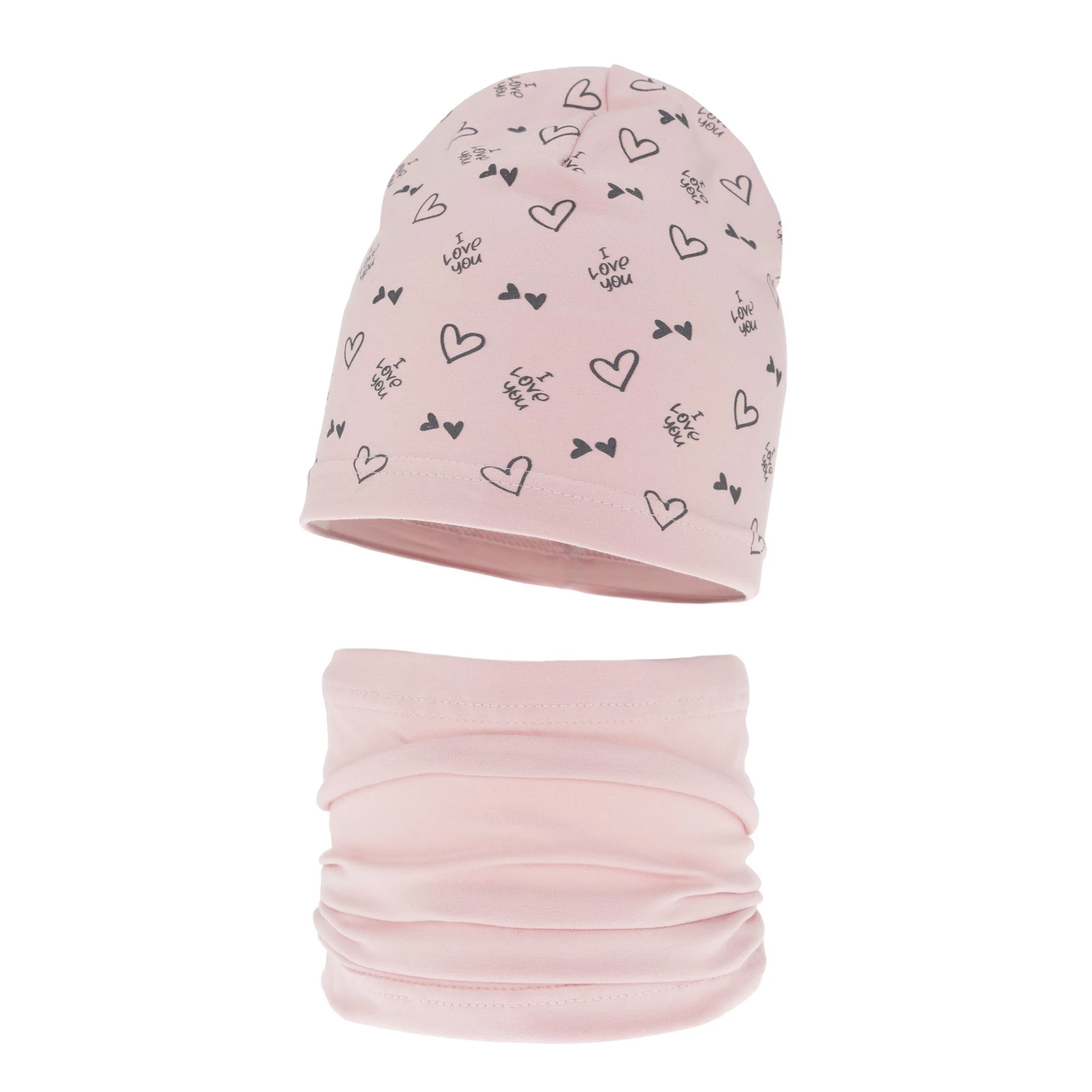 Herbst und Frühlingsset Mädchen baumwolle: Mütze und Schlauchschal Rosa Lovena