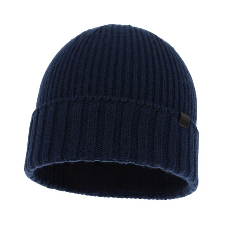 Wintermütze Herren Navy Blau 100% extrafeine Merinowolle nahtlos Bruner