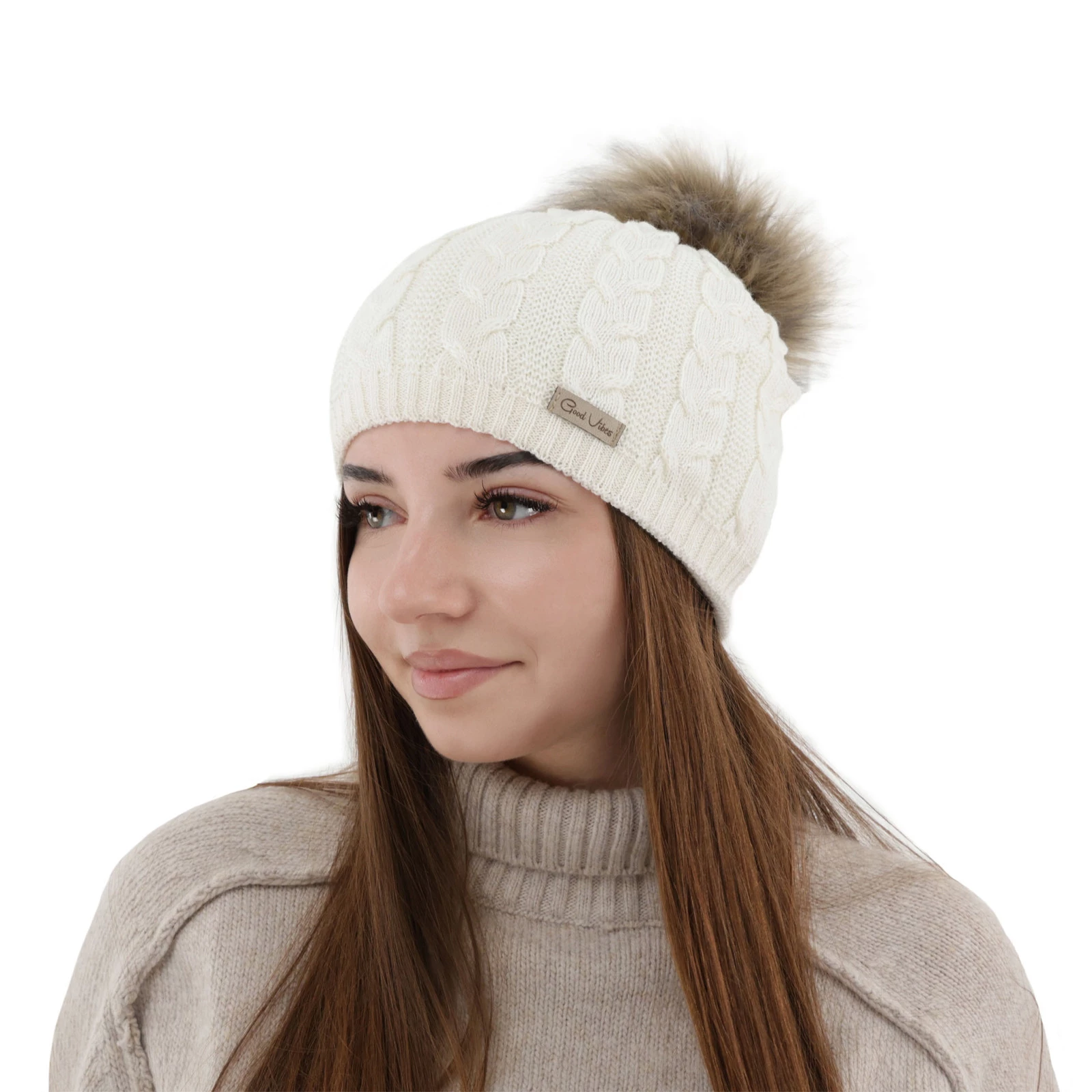 Die Wintermütze Damen Bafi ist nicht nur funktional, sondern auch ein modisches Accessoire für Winter-Outfits. Sie zeichnet sich durch ein interessantes Zopfmuster aus, das ihr einen eleganten und raffinierten Charakter verleiht. Der große, flauschige Kunstfellbommel ist ein attraktives Akzent, das das zeitgemäße Design der Mütze unterstreicht und ihr Charme verleiht.