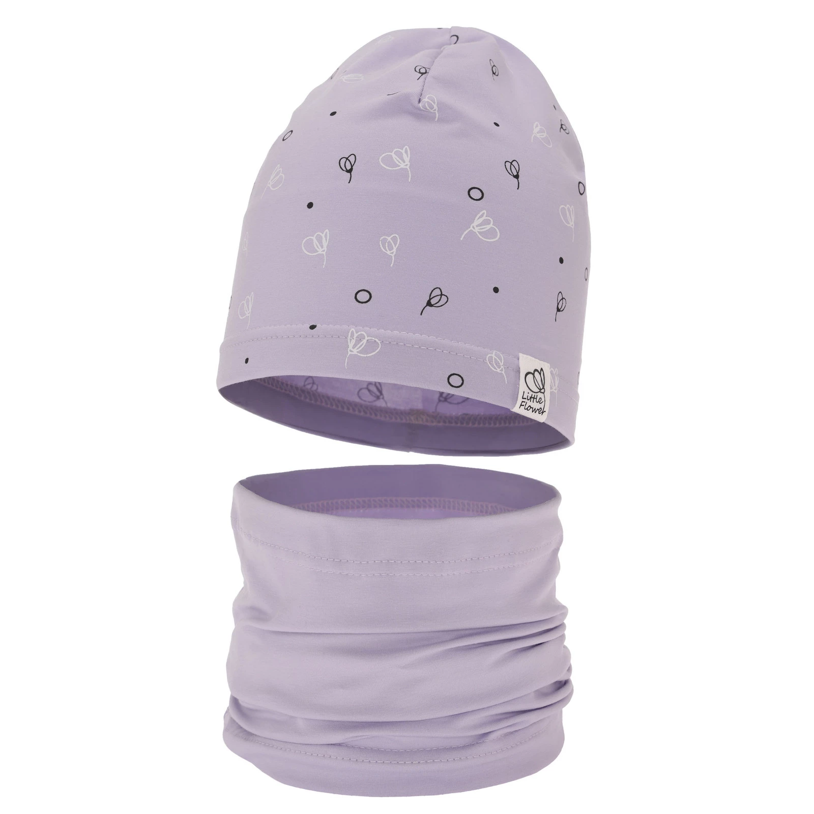 Herbst und Frühlingsset Mädchen baumwolle: Mütze und Schlauchschal Violett Fiora
