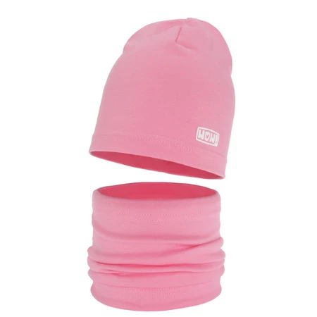 Herbst und Frühlingsset Mädchen baumwolle: Mütze und Schlauchschal Rosa Friza