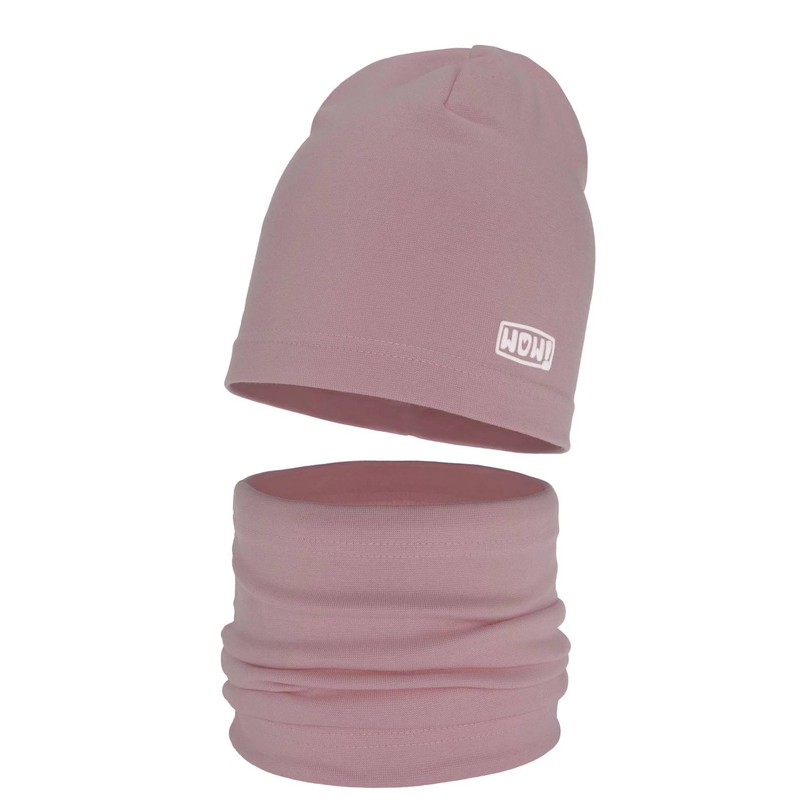 Herbst und Frühlingsset Mädchen baumwolle: Mütze und Schlauchschal Rosa Friza