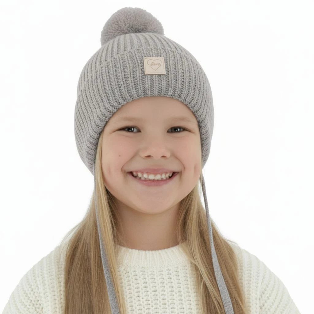 Wintermütze für Mädchen aus 100% extrafeiner Merinowolle, gefüttert mit Wollfleece in Grau Hakkari