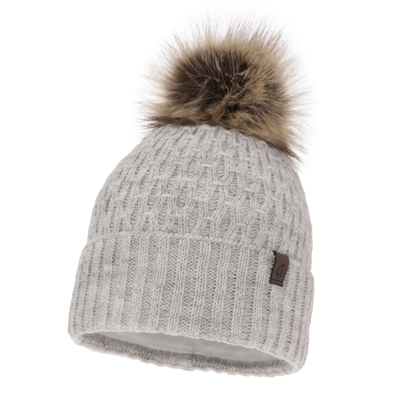 Das auffälligste Element der Wintermütze Damen Gaba ist der große, flauschige Bommel aus Kunstfell. Er verleiht nicht nur Charme, sondern ist auch ein modisches Highlight, das Blicke auf sich zieht. Das subtile Label unterstreicht dezent den Charakter der Mütze, ohne das Gesamtbild zu dominieren.