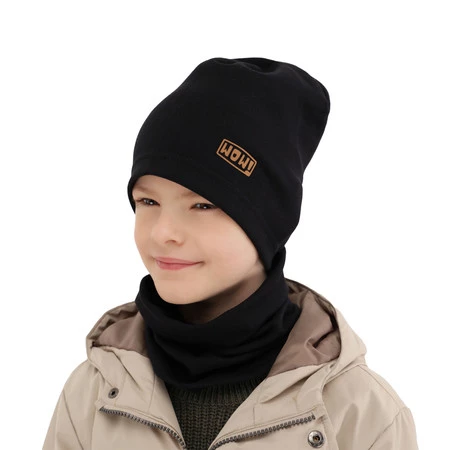Herbst und Frühlingsset Jungen: Mütze und Schlauchschal Schwarz Frizer