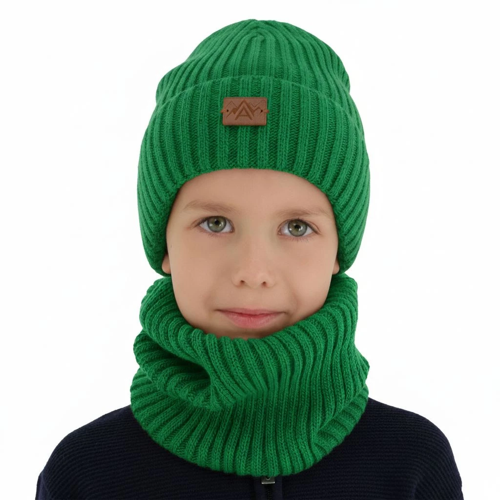 Winterset für Jungen: Mütze und Schlauchschal in Grün Fargo
