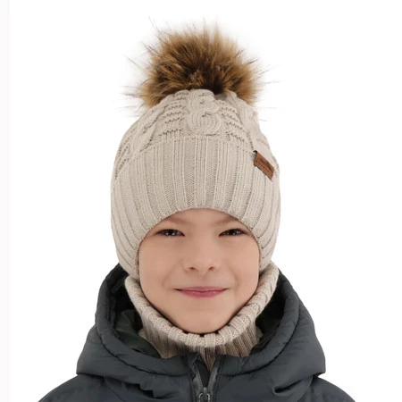 Winterset für Jungen: Mütze und Schlauchsch mit Bommel in Beige Cent