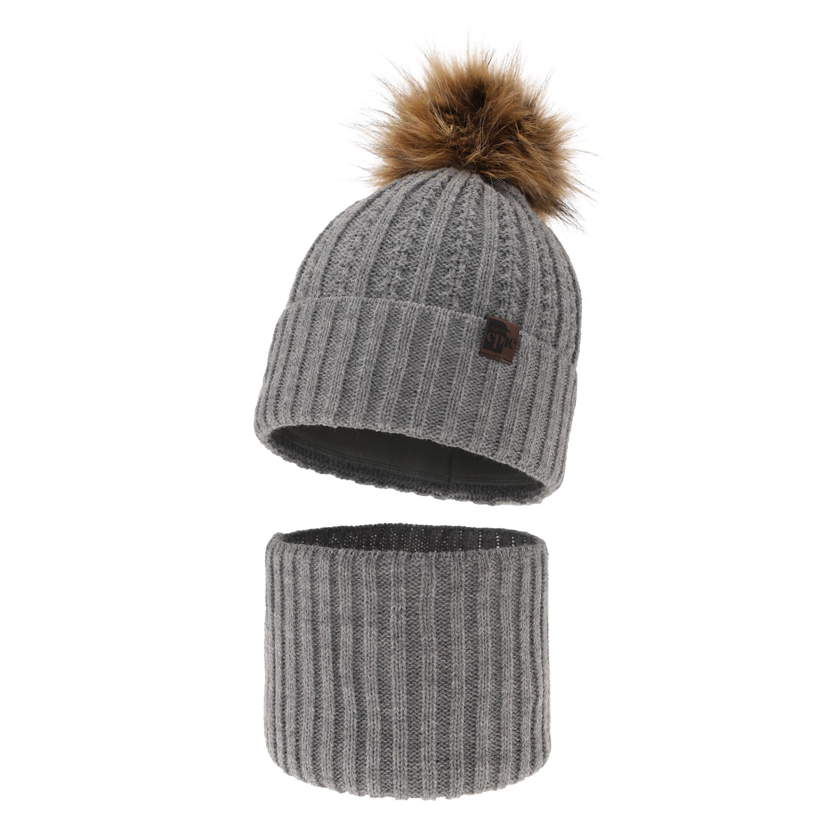 • Mütze mit flauschigem Bommel und Schlauchschal