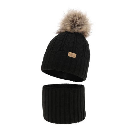 Winterset Mädchen: Mütze und Schlauchschal mit Bommel Schwarz Tanzania