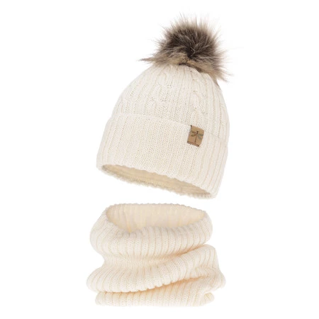 Winterset Mädchen: Mütze und Schlauchschal Merinowolle Cremefarben Aprilia
