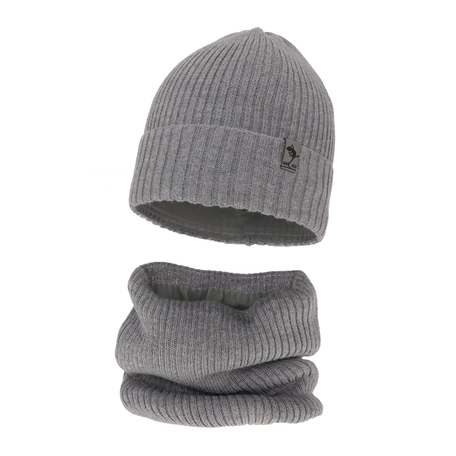 Winterset für Jungen: Mütze und Schlauchschal aus Merinowolle in Grau Gecko