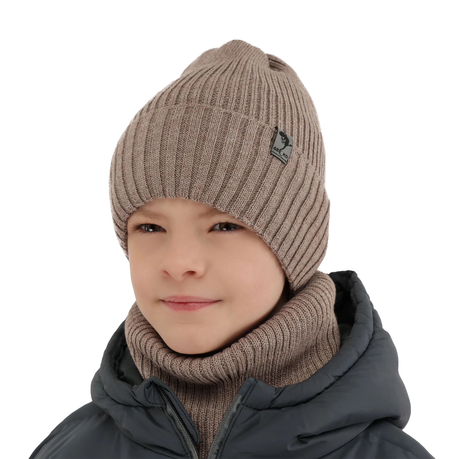 Die Elastizität des Materials sorgt dafür, dass sich das Winterset für Jungen perfekt an die Form von Kopf und Hals anpasst und den ganzen Tag über Tragekomfort bietet. Dies ist besonders wichtig für aktive Kinder, die es nicht mögen, wenn etwas sie beim Spielen stört. Die Verwendung von hochwertigem Garn garantiert die Langlebigkeit des Sets – es behält seine Form und Eigenschaften auch nach mehrmaligem Waschen.
