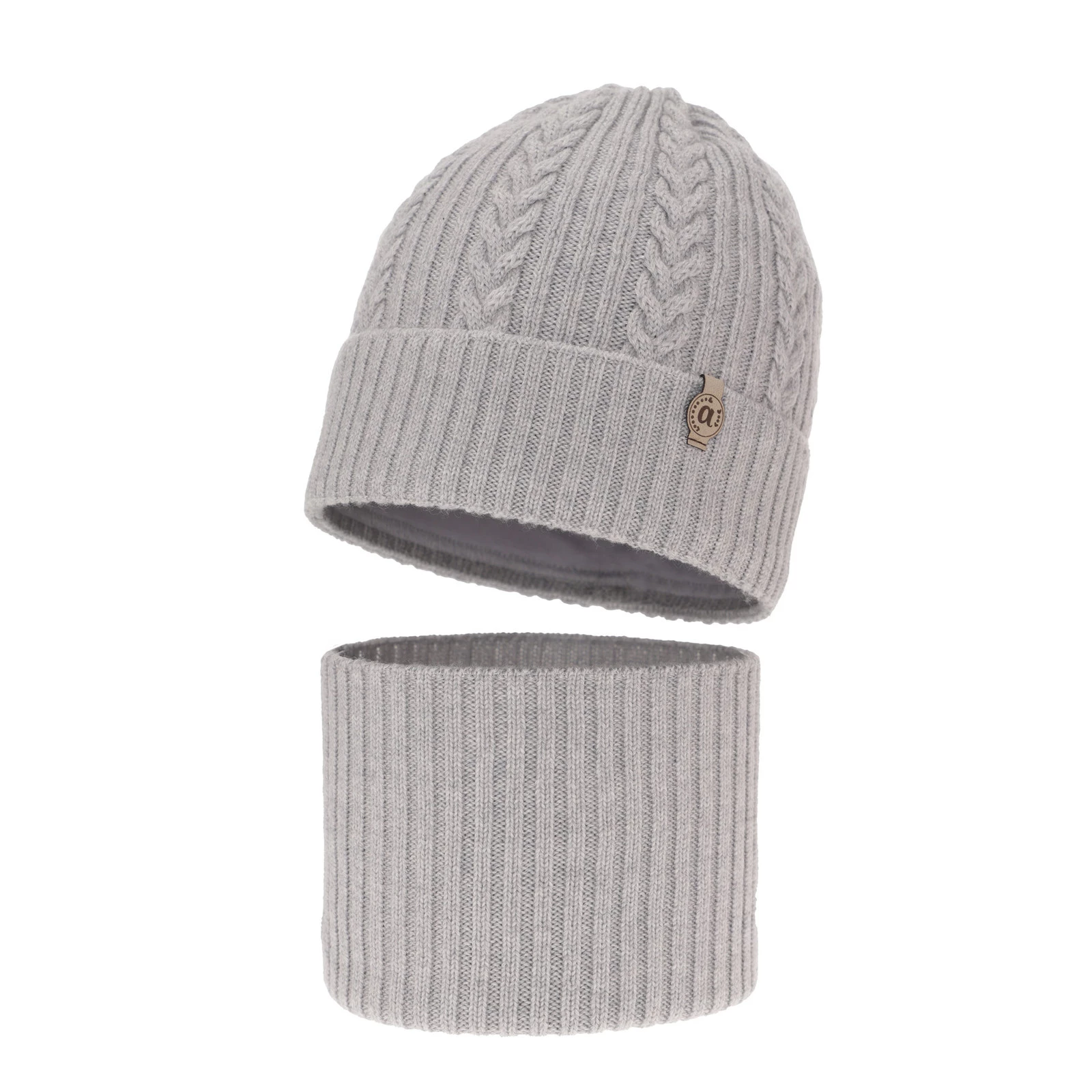 Winterset Mädchen: Mütze und Schlauchschal aus 100% extrafeiner Merinowolle in Grau Jenny