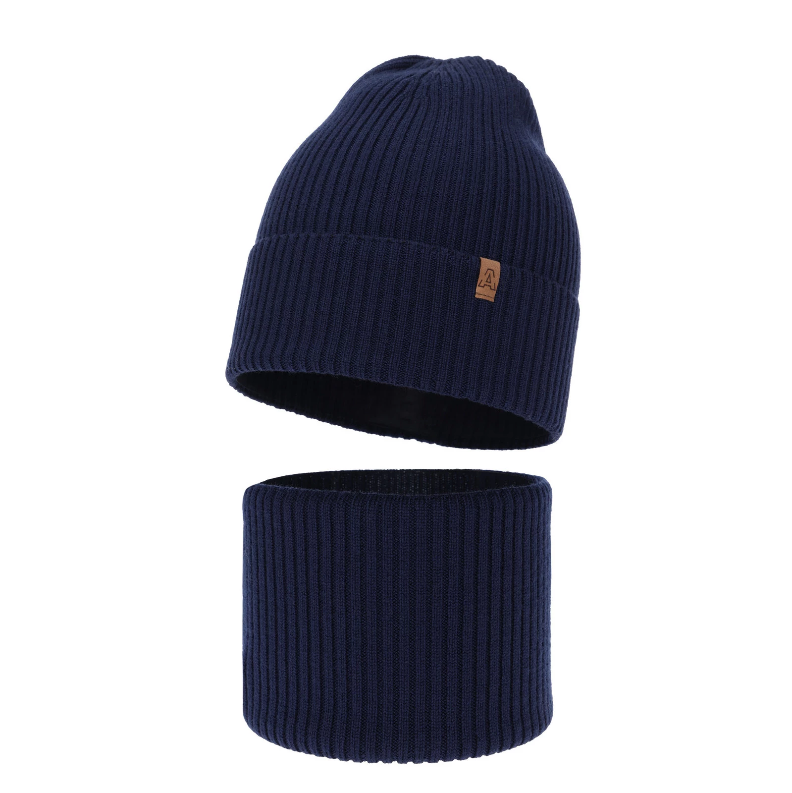 Herbst und Frühlingsset Jungen: Mütze und Schlauchschal 100% extrafeine Merinowolle Navy Blau Lemas