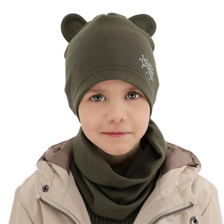 Herbst und Frühlingsset Jungen: Mütze und Schlauchschal Khaki Cymes