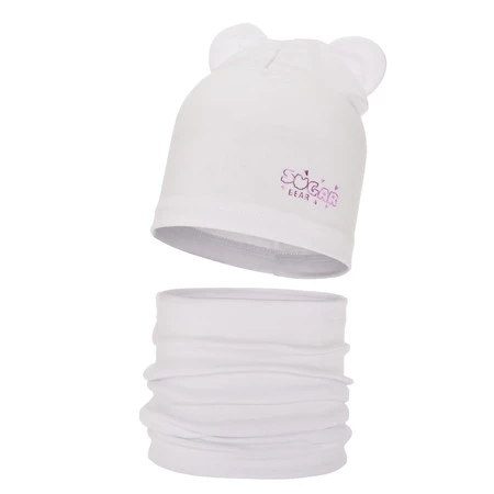 Herbst und Frühlingsset Mädchen baumwolle: Mütze und Schlauchschal Weiß Cyntia