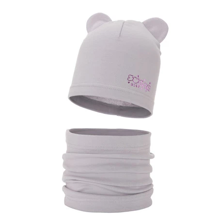 Herbst und Frühlingsset Mädchen baumwolle: Mütze und Schlauchschal Grau Cyntia