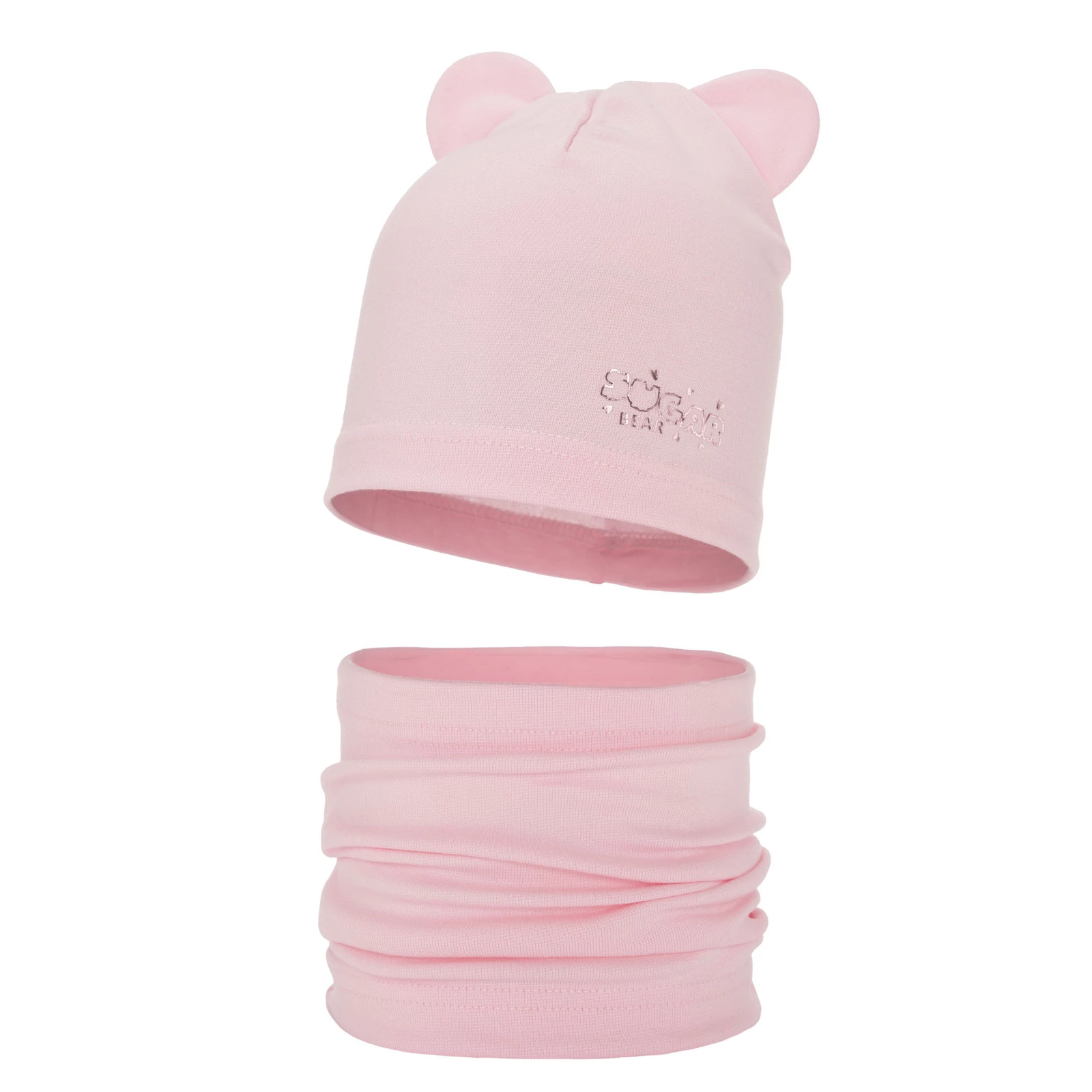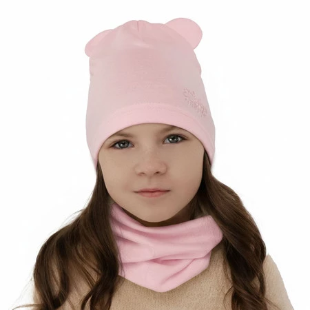 Herbst und Frühlingsset Mädchen baumwolle: Mütze und Schlauchschal Rosa Cyntia