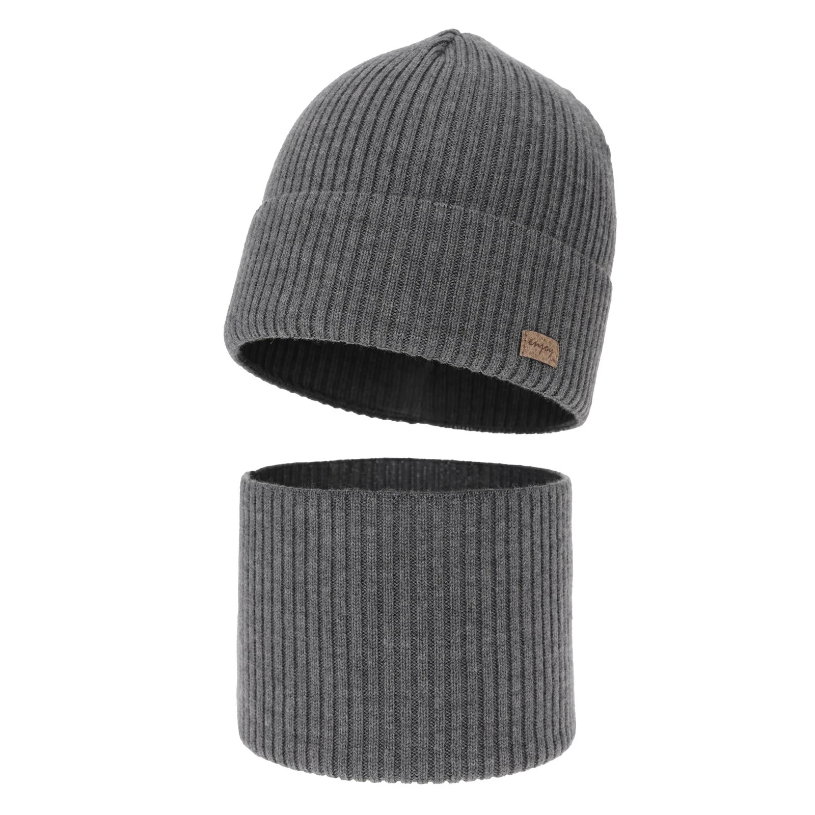 Herbst und Frühlingsset Jungen: Mütze und Schlauchschal 100% extrafeine Merinowolle Grau Intro