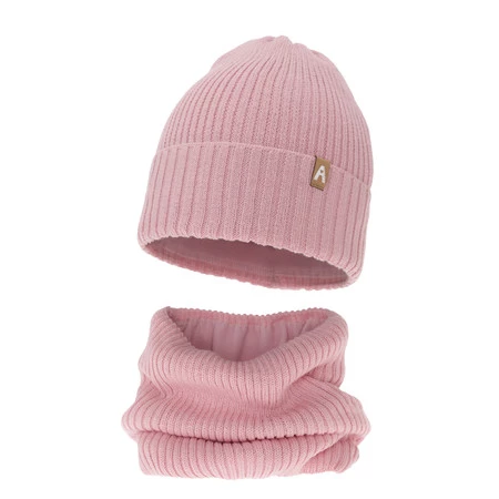 Winterset für Mädchen: Mütze und Schlauchschal aus Merinowolle in Rosa Peggy