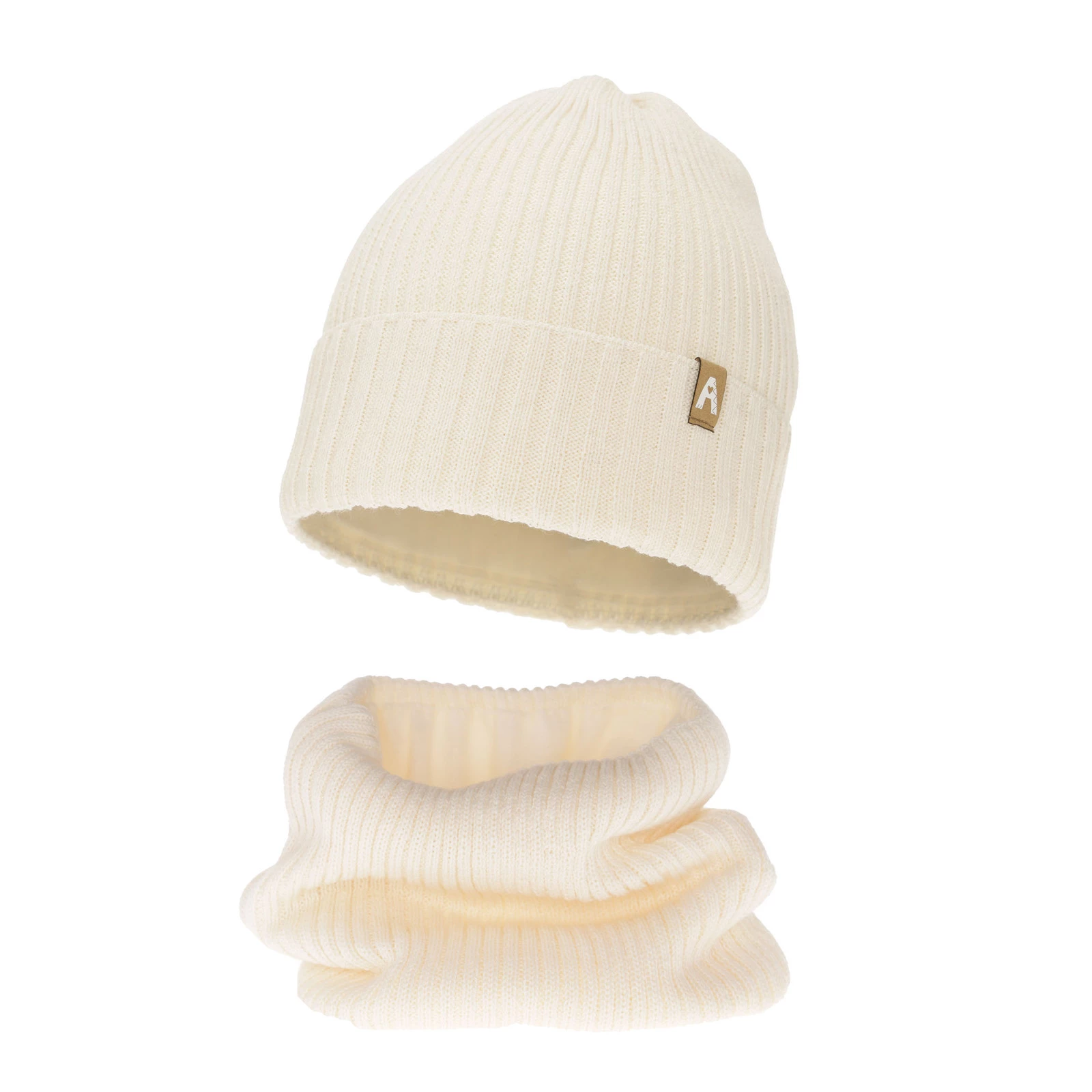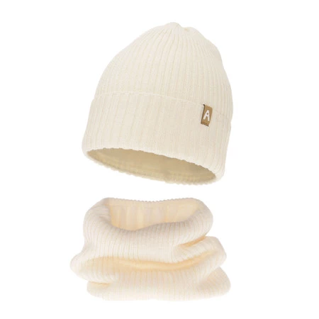 Winterset für Mädchen: Mütze und Schlauchschal aus Merinowolle in Cremefarben Peggy