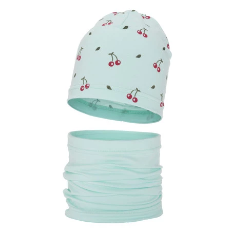 Herbst und Frühlingsset Mädchen baumwolle: Mütze und Schlauchschal Minz Cerise