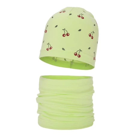 Herbst und Frühlingsset Mädchen baumwolle: Mütze und Schlauchschal Grün Cerise