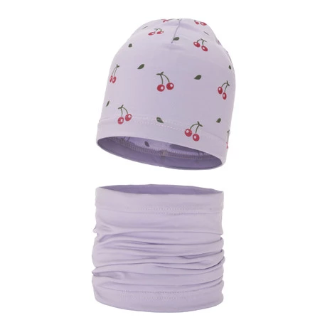 Herbst und Frühlingsset Mädchen baumwolle: Mütze und Schlauchschal Violett Cerise