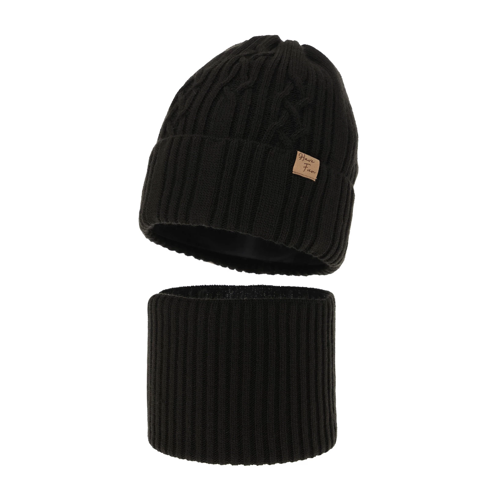 Winterset für Mädchen: Mütze und Schlauchschal in Schwarz Rema