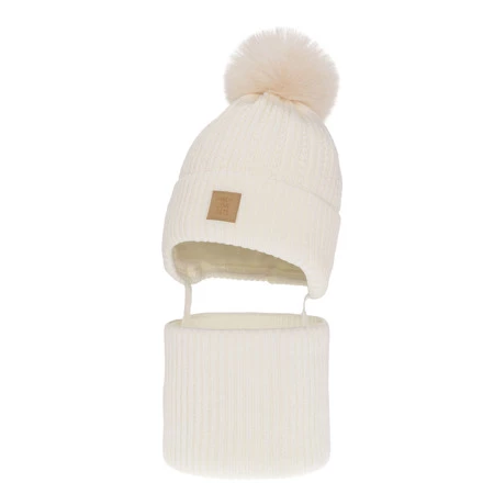 Winterset für Mädchen: Mütze und Schlauchschal mit Bommel in Cremefarben Betty
