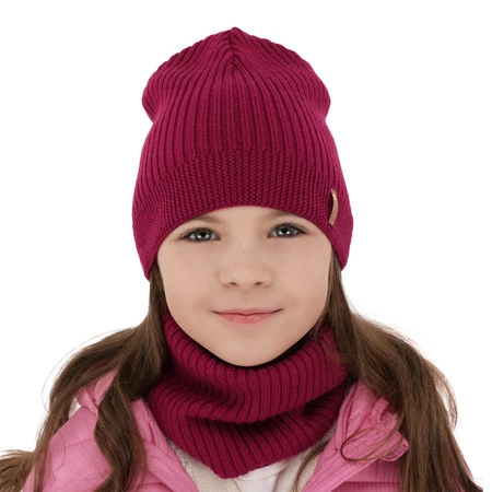 Herbst und Frühlingsset Mädchen: Mütze und Schlauchschal 100% extrafeine Merinowolle Amaranth Chelsie