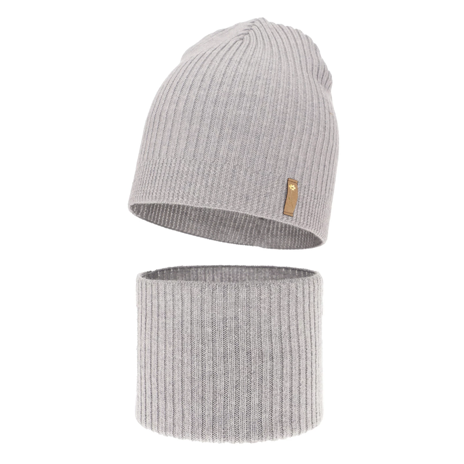Herbst und Frühlingsset Mädchen: Mütze und Schlauchschal 100% extrafeine Merinowolle Grau Chelsie