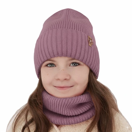 Die modische Rippenstrickung verleiht dem Set ein elegantes Aussehen, das perfekt zu winterlichen Outfits passt. Das dekorative Etikett am Mützenumschlag verleiht Charme und unterstreicht die Einzigartigkeit dieses Sets. Die mädchenhafte Farbgebung macht das Set zur idealen Ergänzung jeder winterlichen Garderobe Ihrer Tochter. Dank der Verwendung von hochwertigster extrafeiner Merinowolle und der zusätzlichen Fleece-Schicht bietet das Ganze auch eine ausgezeichnete Wärmeisolierung und vollen Tragekomfort, selbst an den kältesten Tagen.
