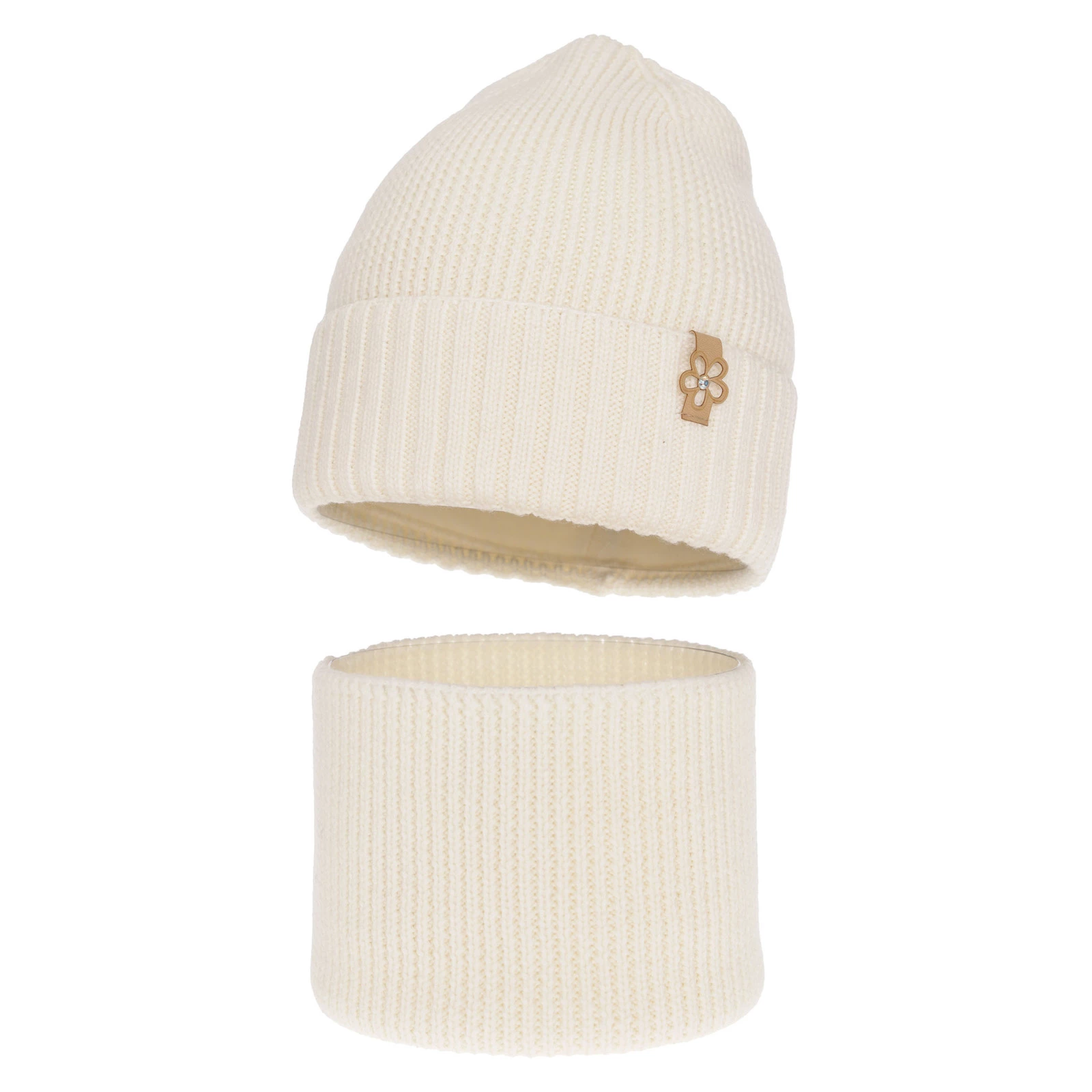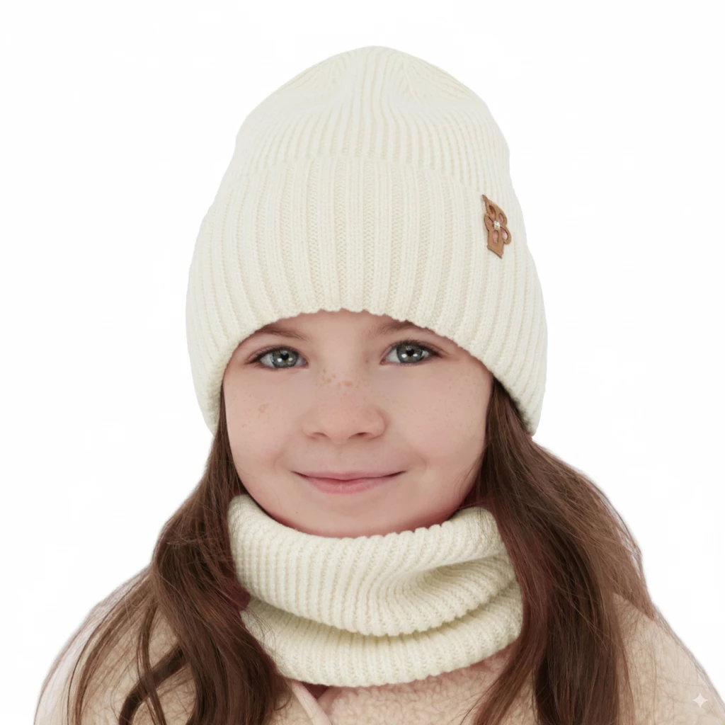 Winterset Mädchen: Mütze und Schlauchschal 100% extrafeine Merinowolle Cremefarben Nelita