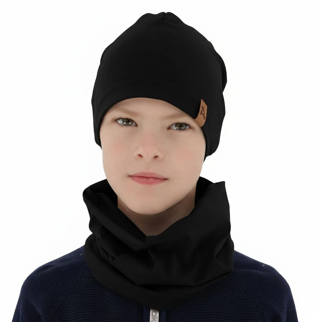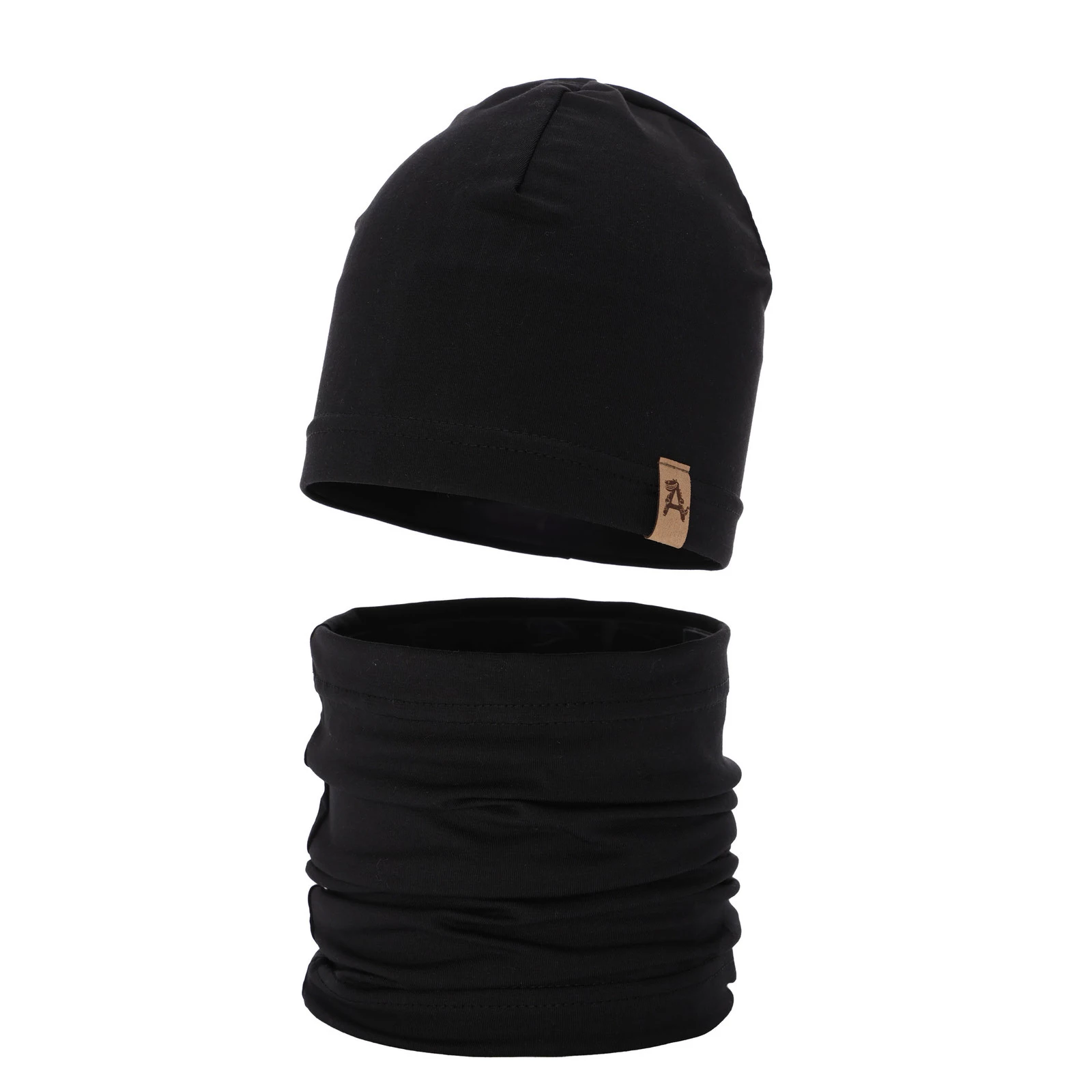Herbst und Frühlingsset Jungen: Mütze und Schlauchschal Schwarz Griffin