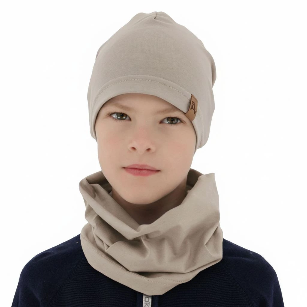 Herbst und Frühlingsset Jungen: Mütze und Schlauchschal Beige Griffin