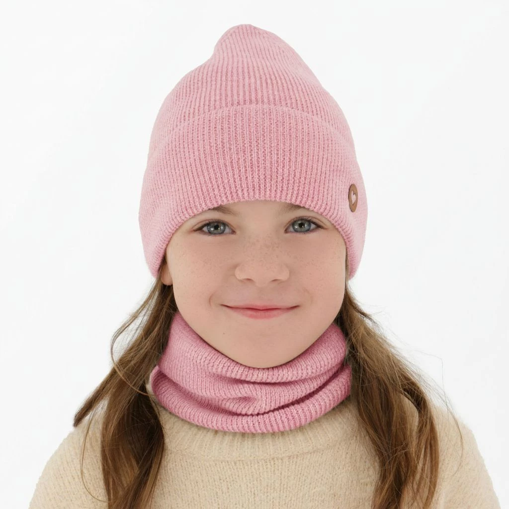 Herbst und Frühlingsset Mädchen: Mütze und Schlauchschal 100% extrafeine Merinowolle Rosa Brook