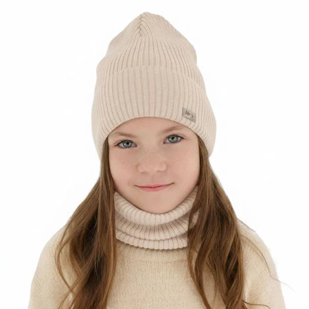 Mütze und Schlauchschal zeichnen sich durch eine modische Rippstrickstruktur aus, die ihnen ein stylisches und originelles Aussehen verleiht. Das elegante Etikett auf der Umschlagkante der Mütze verleiht dem Ganzen Chic und Klasse. Das Set ist in verschiedenen Farben erhältlich, sodass es zu jedem Outfit und jeder Persönlichkeit des Mädchens passt. Es ist das ideale Set für Spaziergänge im Park, Schulausflüge oder Wochenendausflüge mit der Familie.