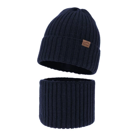 Winterset für Jungen: Mütze und Schlauchschal Merinowolle in Navy Blau Merinowolle Karmin